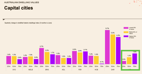 Another key find in the stratification of sales prices in the various capital cities relates to Canberra. This month, Canberra defies the ‘norm’ and exhibits stronger growth in the highest price quartile. What is going on in our nation’s capital? Tune in to find out.
