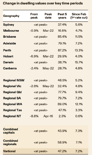 📈 Almost all cities and combined regions have eclipsed their last peak, but Hobart, Canberra, Melbourne, regional Vic and regional NT are still playing catch up.