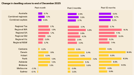Dave points out that we have experienced the highest national growth since 2021, and the Trio break down the star performers for the final month of the year. Adelaide and Perth continued their stellar run for December, yet Melbourne and Sydney marginally slipped back. The trio consider the reasons for this, circling stock levels, auction centric markets and price segmentation.
