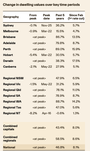 📈 Almost all cities and combined regions have eclipsed their last peak, but Hobart, Canberra, Melbourne, regional Vic and regional NT are still playing catch up.