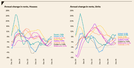 Rents continue to deliver a pace with broadly outpaces target inflation, however the rate of rental growth has certainly eased across the various capitals.