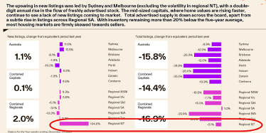 Despite total listing activity sitting below historical levels, the listing volumes caught up in some of the capitals later in the year. Both Melbourne and Sydney’s December growth results could be apportioned to this heightened activity, while it’s easy to see that Adelaide, Darwin, Brisbane and Perth’s stellar performance are directly proportional to the stock shortage in these markets.