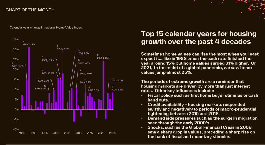 🏠 And on that note, the Trio noted Cotality’s “Chart of the month”, citing an episode that they shared with The Property Professor, Peter Koulizos in relation to the link between growth and interest rates.
